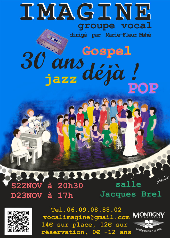 • Le Groupe Vocal Imagine fête ses 30 ans lors de deux concerts les 22 et 23 novembre à la salle Jacques BREL, l’occasion de retracer son parcours musical :